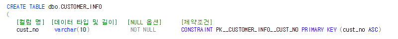 cust_no varchar(10) NOT NULL CONSTRAINT PK__CUSTOMER_INFO__CUST_NO PRIMARY KEY (cust_no ASC)